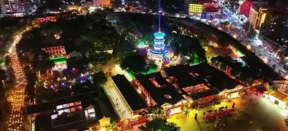 5月19日当天,陆丰玄武山举办非遗展演晚会并启动夜市,正字戏、滚地金龙等非遗项目与多家特色美食摊位联动,吸引众多游客参与。